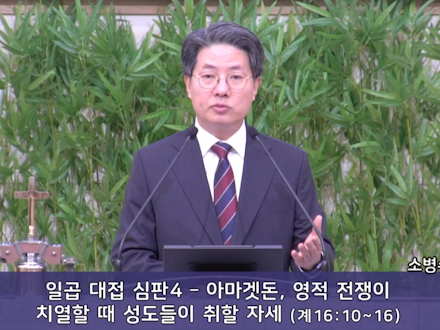 2024-04-21 일곱 대접 심판4 - 아마겟돈, 영적 전쟁이 치열할 때 성도들이 취할 자세 ( 요한계시록 16:10~16 )