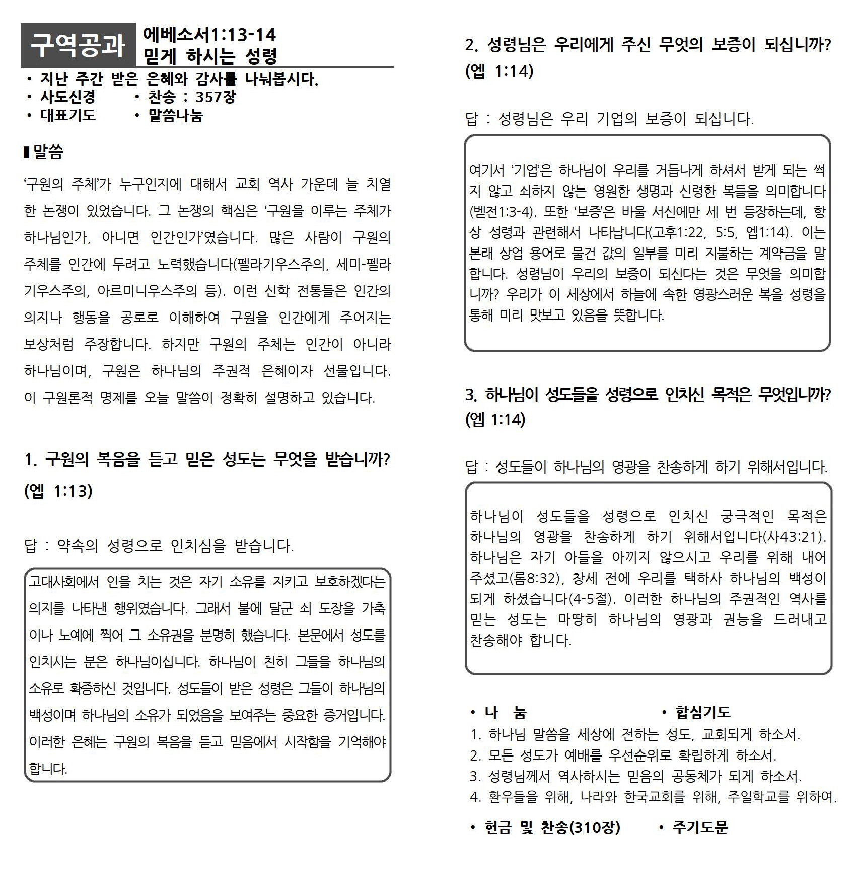 6월 셋째주 구역공과
