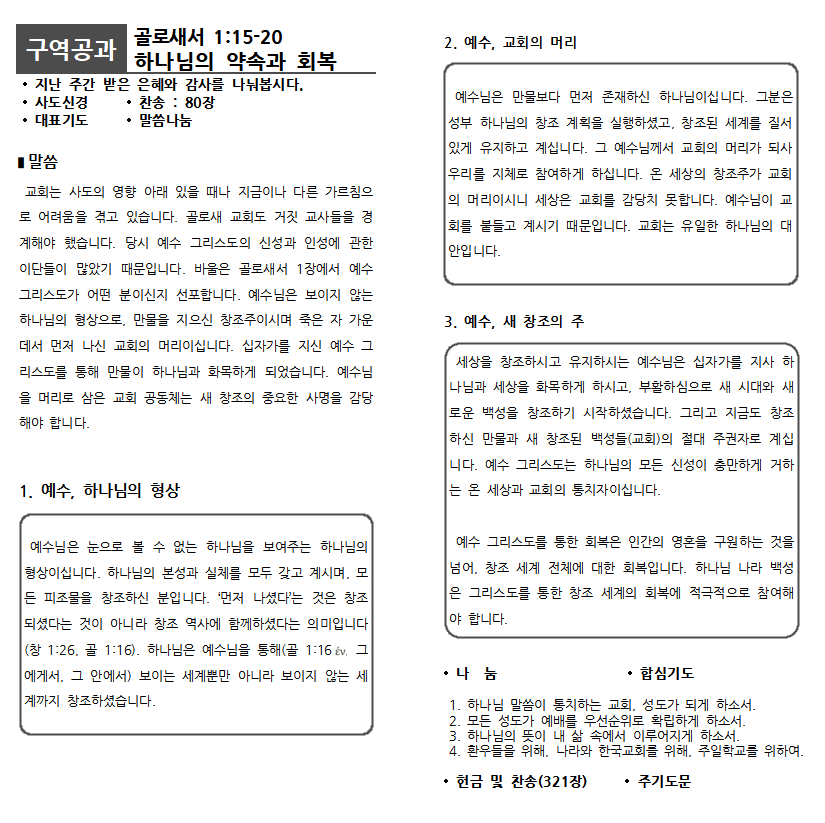 2026년 1월 넷째주 구역공과